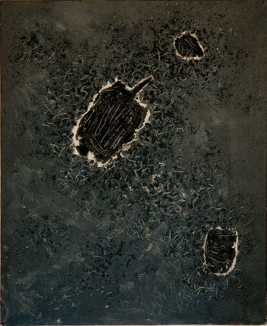 L’ànsia de recerca continua obrint portes cap a l’abstracció: el contingut social desapareix, la matèria agafa més protagonisme i dona pas a una mena d’especulació plàstica on textura i color construeixen nous camins d’exploració artística que desprenen una profunda sensibilitat humana.